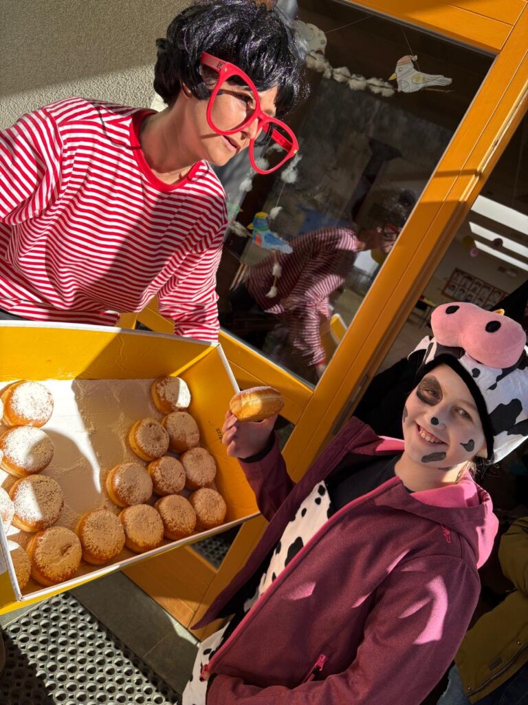 Auch an unserer Schule wurde gemeinsam Fasching gefeiert und es wurden leckere Krapfen vom Elternverein verspeist. 😁🎉🎈